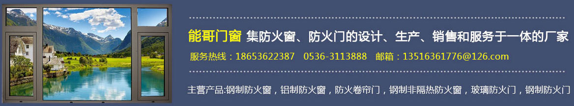 濰坊能哥門窗有限公司集鋼制防火窗,鋁制防火窗,防火卷簾門,鋼制非隔熱防火窗,玻璃防火門,鋼制防火門,防火門的設計、生產、銷售和服務于一體的專業廠家。 自成立以來,始終堅持精益求精的企業精神,視質量為生命,以質量求生存,靠信譽求發展。公司擁有雄厚的資金實力和開發設計力量,新產品不斷涌現,極富創意的結構設計,為你解決后顧之憂。 可廣泛應用于現代化高層建筑、工業建筑、廠房、賓館、各種娛樂場所等。我們的質量方針是:質量為本、服務至上,以優良的產品在競爭中贏得市場和信譽。公司將靈感、創新、細致融為一體,努力為你創造出舒服的人文環境。是我們永遠追求的目標,竭誠歡迎社會各界人士惠顧、合作。